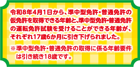中型車をご希望のお客さまは、別途手数料として、仮免学科手数料1,800円/1回、仮免交付手数料1,100円、県学科試験手数料(県内在住の方)1,650円が必要となります。 |